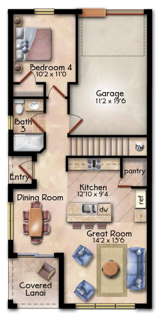 The Summerland home plan is designed for easy living with thoughtful layouts and abundant natural light. With four bedrooms, three baths, and flexible gathering spaces, this residence offers the perfect balance of comfort and functionality for modern South Florida lifestyles.